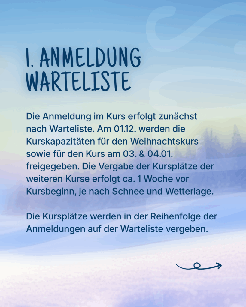 Melde dich jetzt zu unseren Ski-Kursen an und sichere dir deinen Platz! Achte auf die verschiedenen Kursstufen, damit du genau den Kurs wählst, der zu deinem Können passt. Die Anmeldung erfolgt bequem über unser Online-Portal – bitte beachte auch unsere Informationen zum Anmeldeverfahren. Die Kurstermine sowie deren Anmeldestart findest du weiter unten.